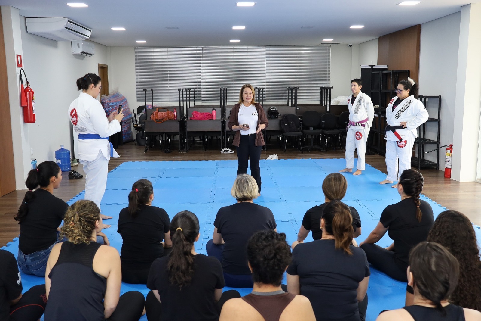 A ação foi ministrada pela professora Analu Santiago, faixa preta de jiu-jítsu da equipe Gracie Barra, com apoio das instrutoras Lívia Mota, faixa roxa, e Adryenne Miranda, faixa azul.
